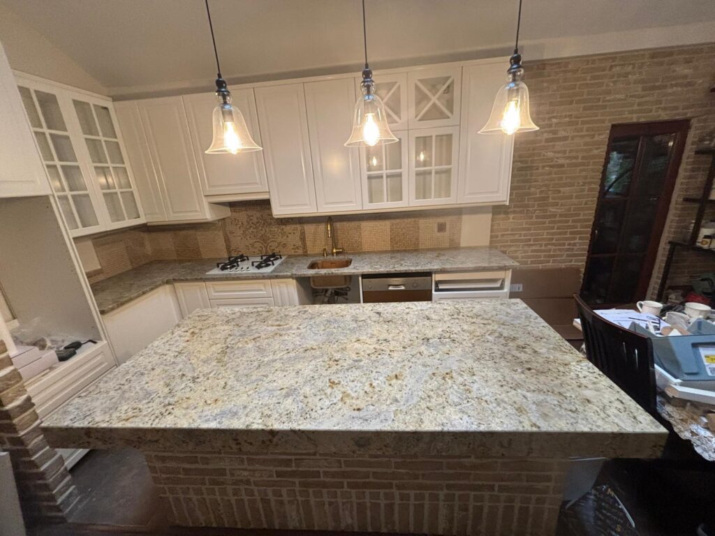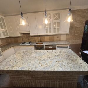 Blat i wyspa kuchenna z granitu Wyspa oraz blat kuchenny docięty na wymiar. Zostały wykonane z jasnego granitu. W blacie wykonano otwory oraz zamontowano zlew, kran oraz kuchenkę gazową. Może ci się spodobać również Nagrobek – Hrebenne 2022-12-16 Grobowiec w miejscowości Bełżec 2022-11-05 Duży grobowiec rodzinny w Lubyczy Królewskiej 2026-04-01
