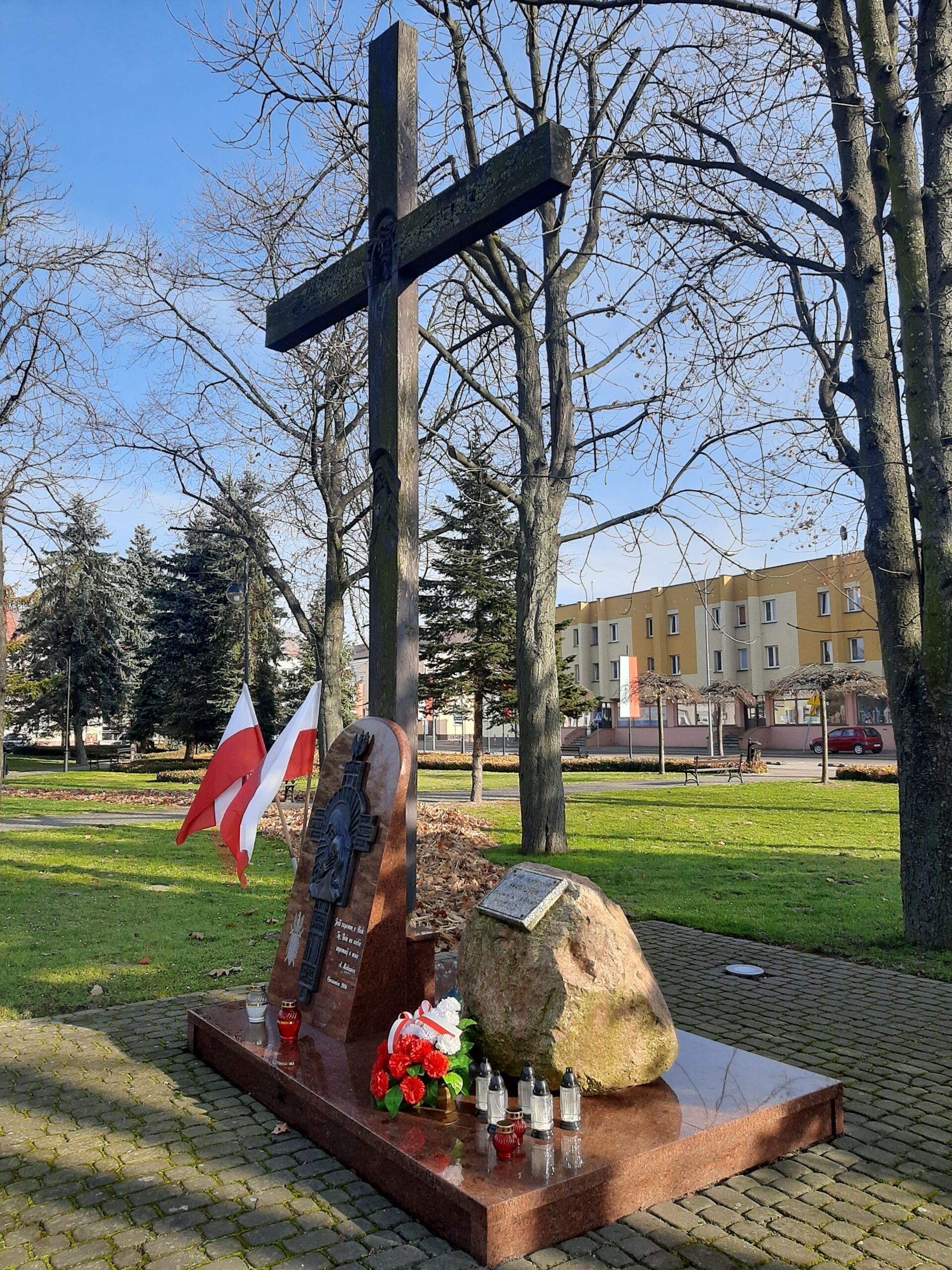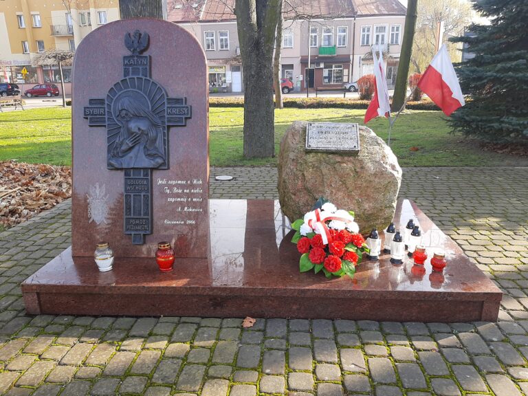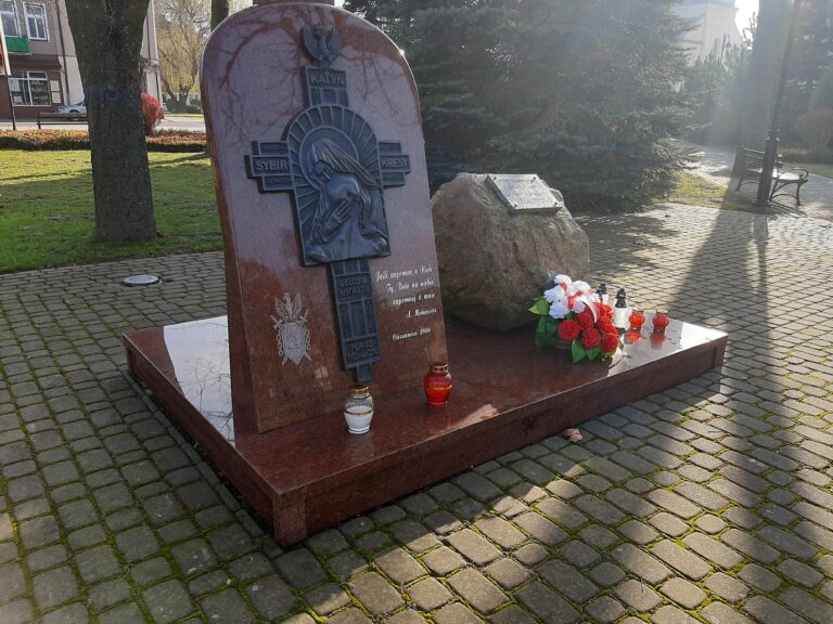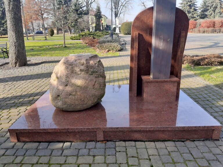 Krzyż katyński na rynku w Cieszanowie w powiecie lubaczowskim to jedna z wielu realizacji pomników wykonana w ostatnich latach przez naszą firmę Kamieniarstwo- Piotr Komadowski. Postument i tablicę wykonano ze szwedzkiego granitu o nazwie Vanga. Na postumencie umieszczono okazały głaz z tabliczką, natomiast na tablicy umieszczono stalową płaskorzeźbę za którą usytuowano drewniany krzyż.