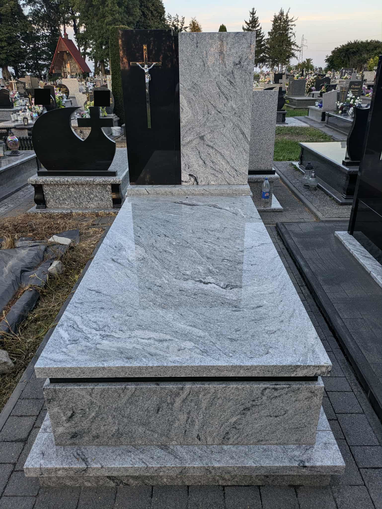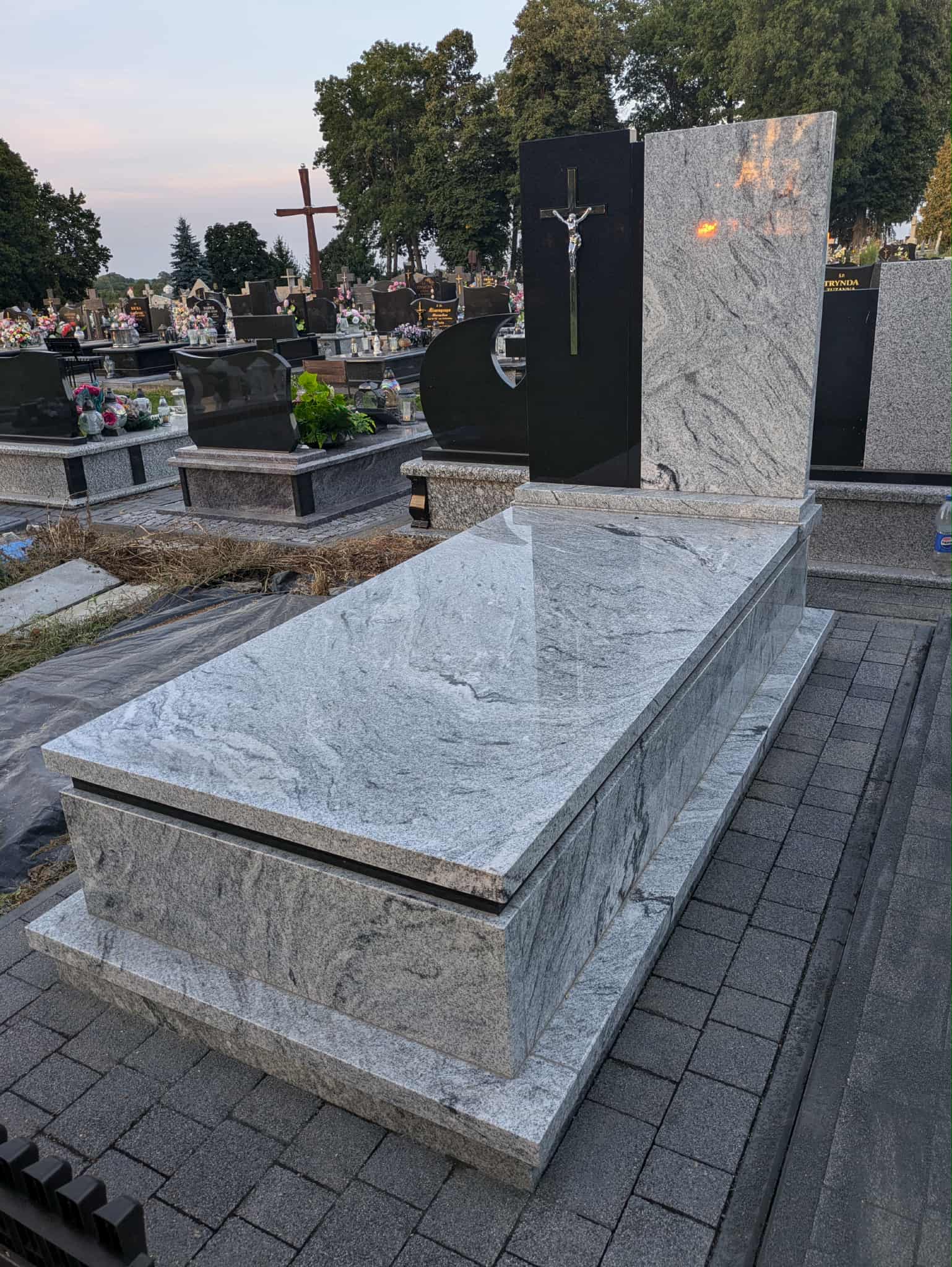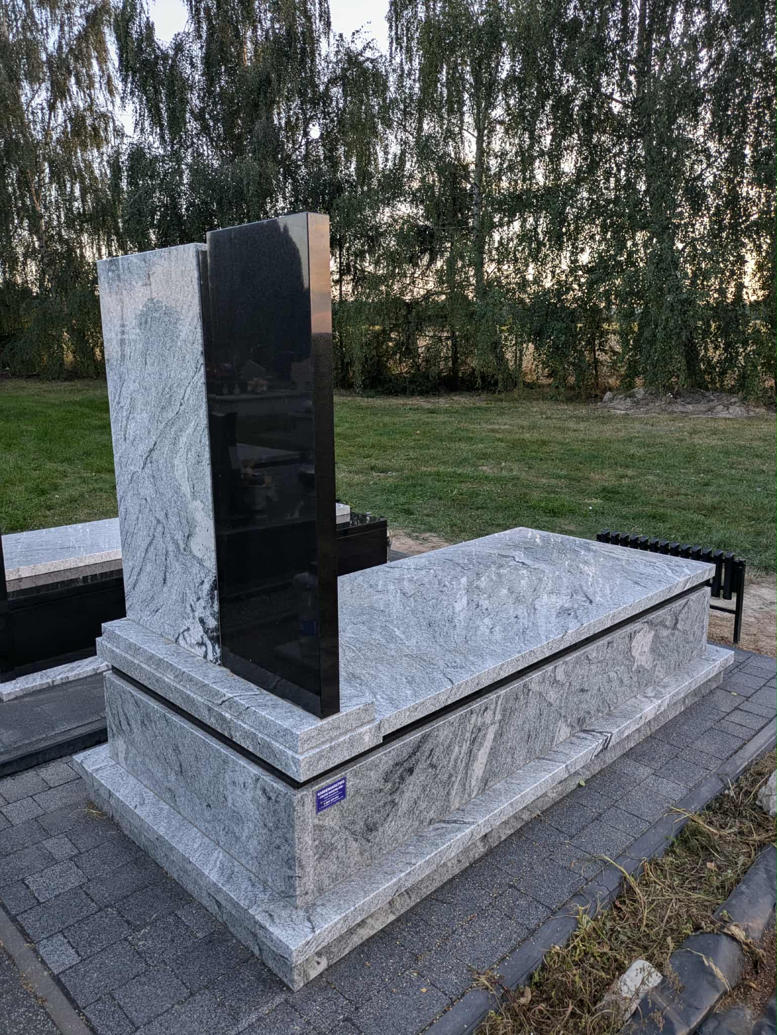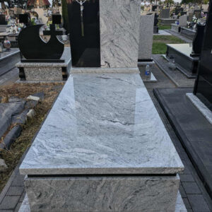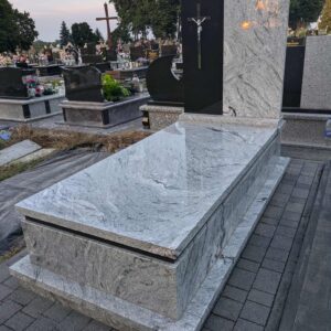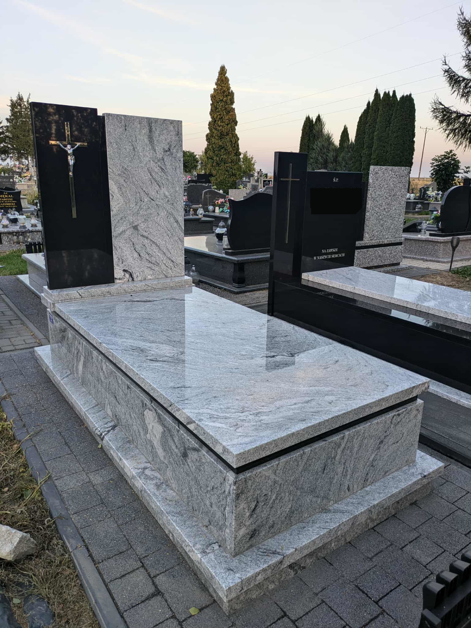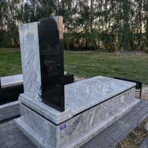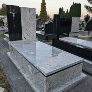 Kolejny nagrobek w Jarczowie Nagrobek powstał na cmentarzu w Jarczowie. Prawa część tablicy oraz pasek pod pokrywą wykonano z czarnego granitu, pozostałe elementy z białego. Dodatkowo zamontowano stalowy srebrny krzyż na czarnej tablicy. Może ci się spodobać również Grobowiec w niebieskim odcieniu granitu 2025-04-29 Siedliska Tomaszowskie- nagrobek 2023-10-19 Nagrobek w Żurawcach 2023-10-15