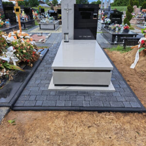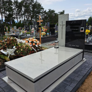 Nagrobek w Cieszanowie Nagrobek został wykonany na cmentarzu w podkarpackim Cieszanowie. Ma prostą, nowoczesną bryłę. Został wykonany z dwóch odmian kamienia naturalnego. Może ci się spodobać również Mały nagrobek dla dziecka 2024-11-18 Nagrobek z rzeźbą 2025-06-12 Nagrobek w Bełżcu 2023-05-26