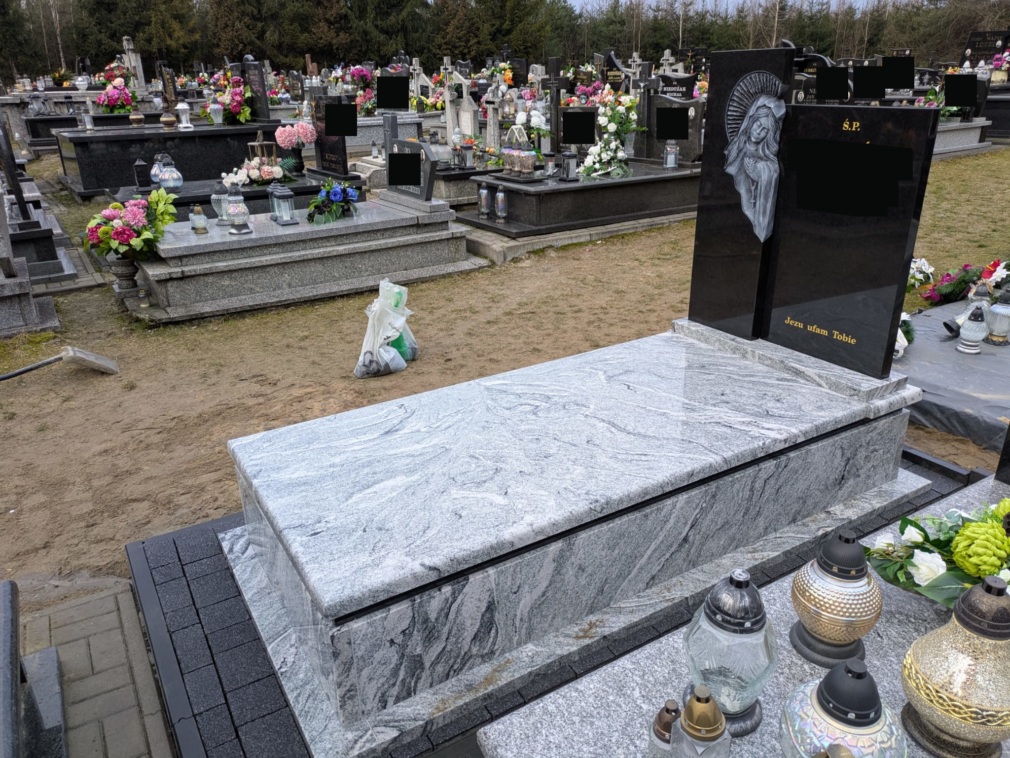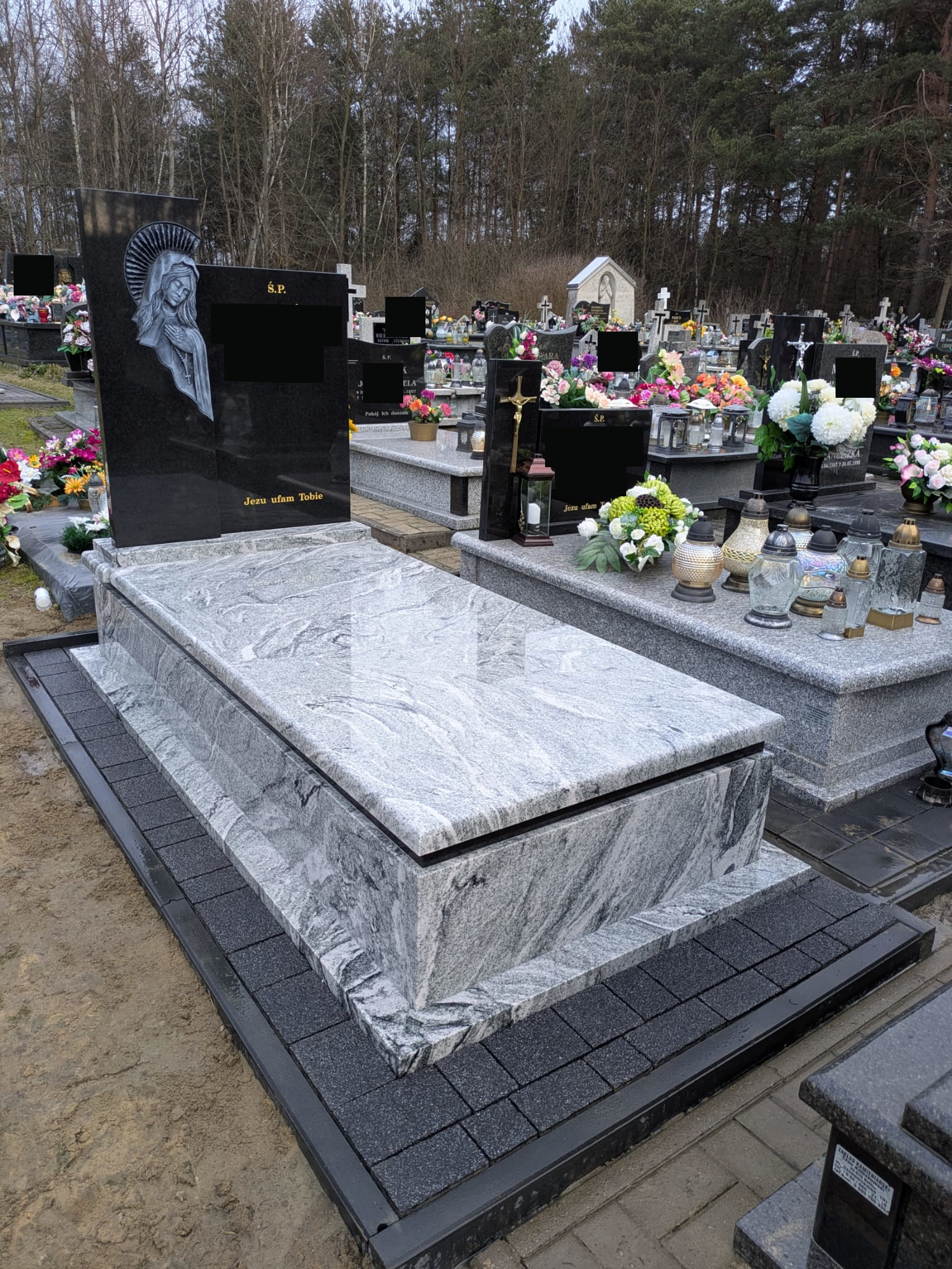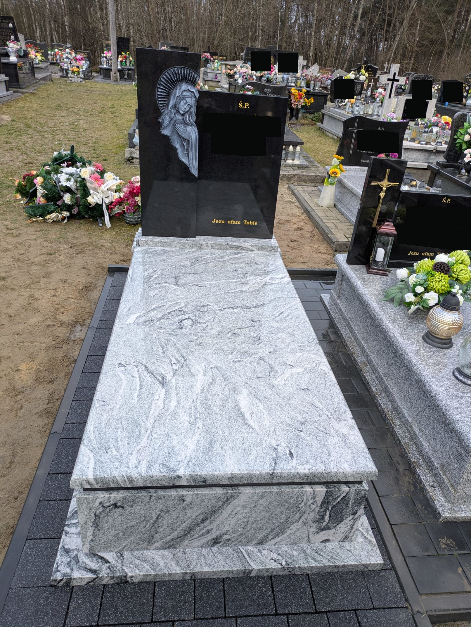 Nagrobek w gminie Narol Nagrobek w Łukawicy (gmina Narol). Zbudowano go z dwóch odmian granitu kontrastujących kolorem. Charakterystycznym elementem jest płaskorzeźba Matki Boskiej. Dookoła nagrobka została ułożona kostka brukowa. Może ci się spodobać również Nowy pomnik na wystawie w Bełżcu 2024-10-30 Nagrobek w Bełżcu 2025-11-13 Grobowiec w Łukawicy 2023-10-13