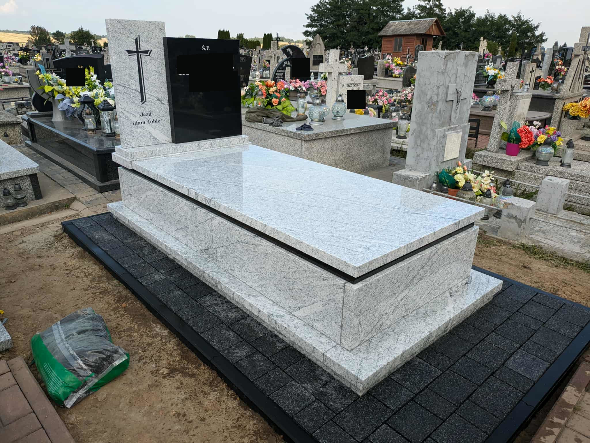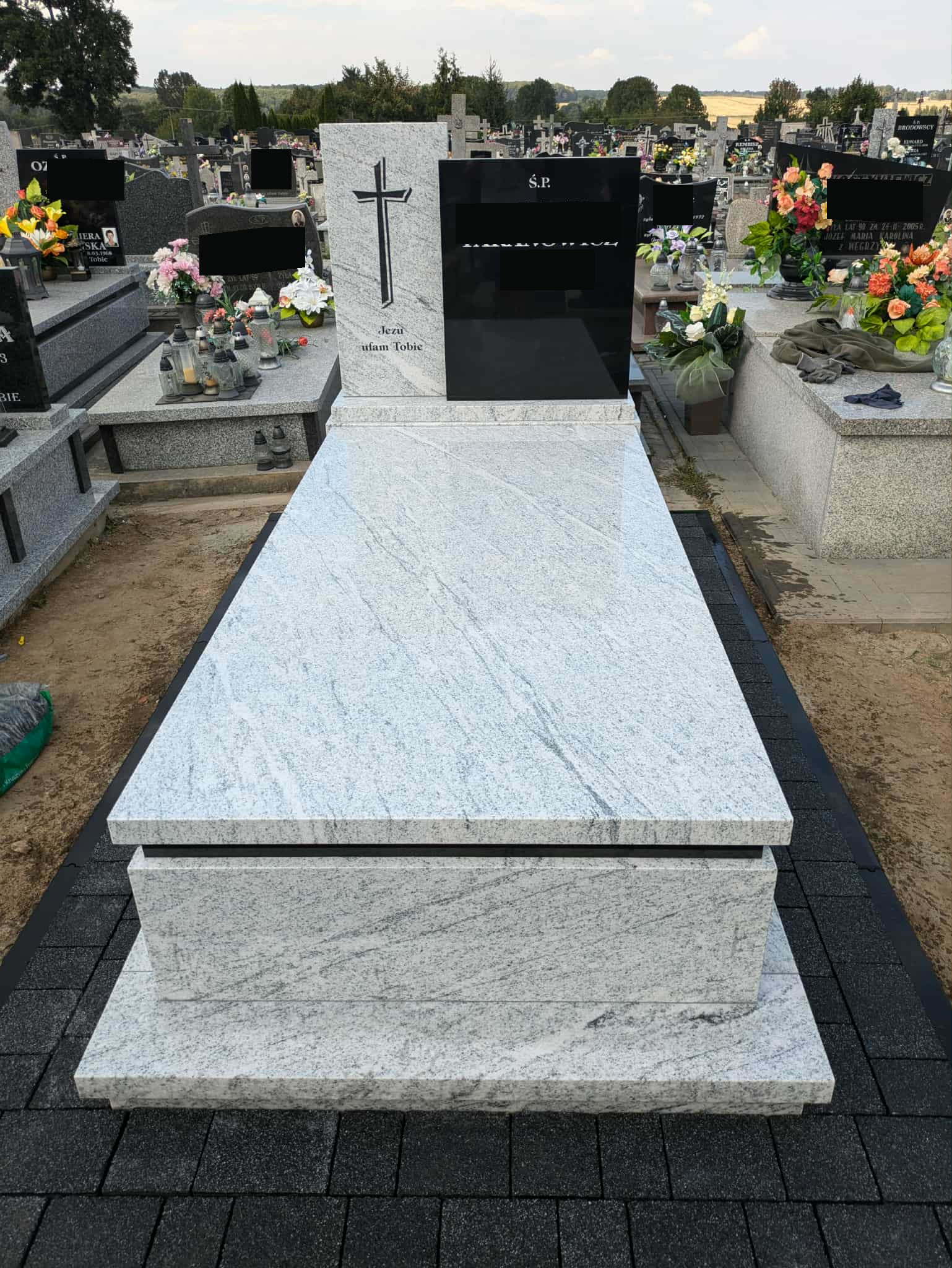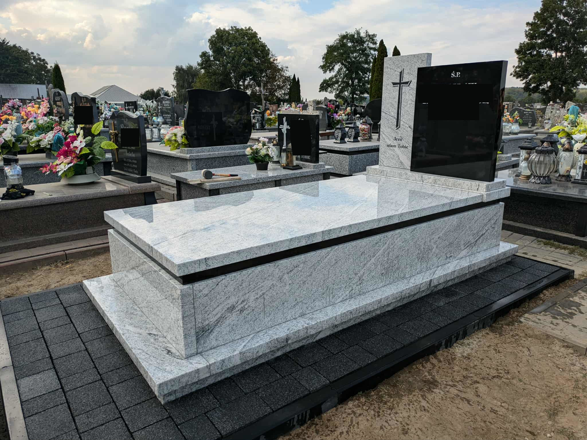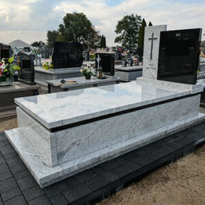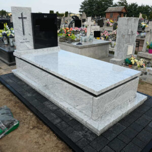 Nagrobek w Gródku Nagrobek został wykonany na cmentarzu w Gródku (gmina Jarczów). Ma on prostą nowoczesną bryłę. Przeważa kamień w kolorze jasnym, jedynie prawa część tablicy oraz pasek pod pokrywą jest zrobiony z czarnego granitu. Dookoła ułożono kostkę brukową. Może ci się spodobać również Nagrobek w Starym Dzikowie 2025-10-31 Pomnik w Łosińcu 2022-11-03 Mały nagrobek rodzinny w Bełżcu 2025-12-04