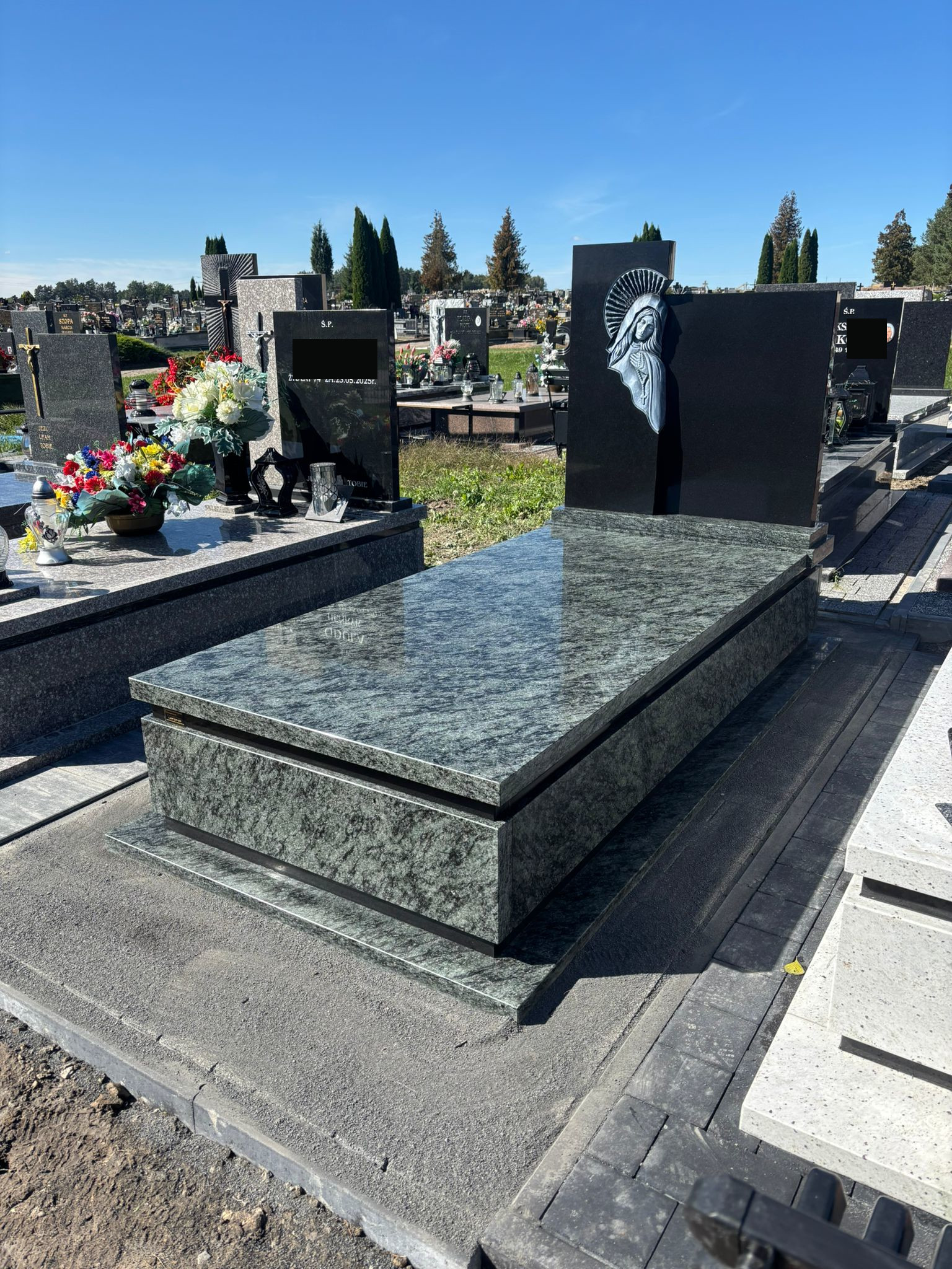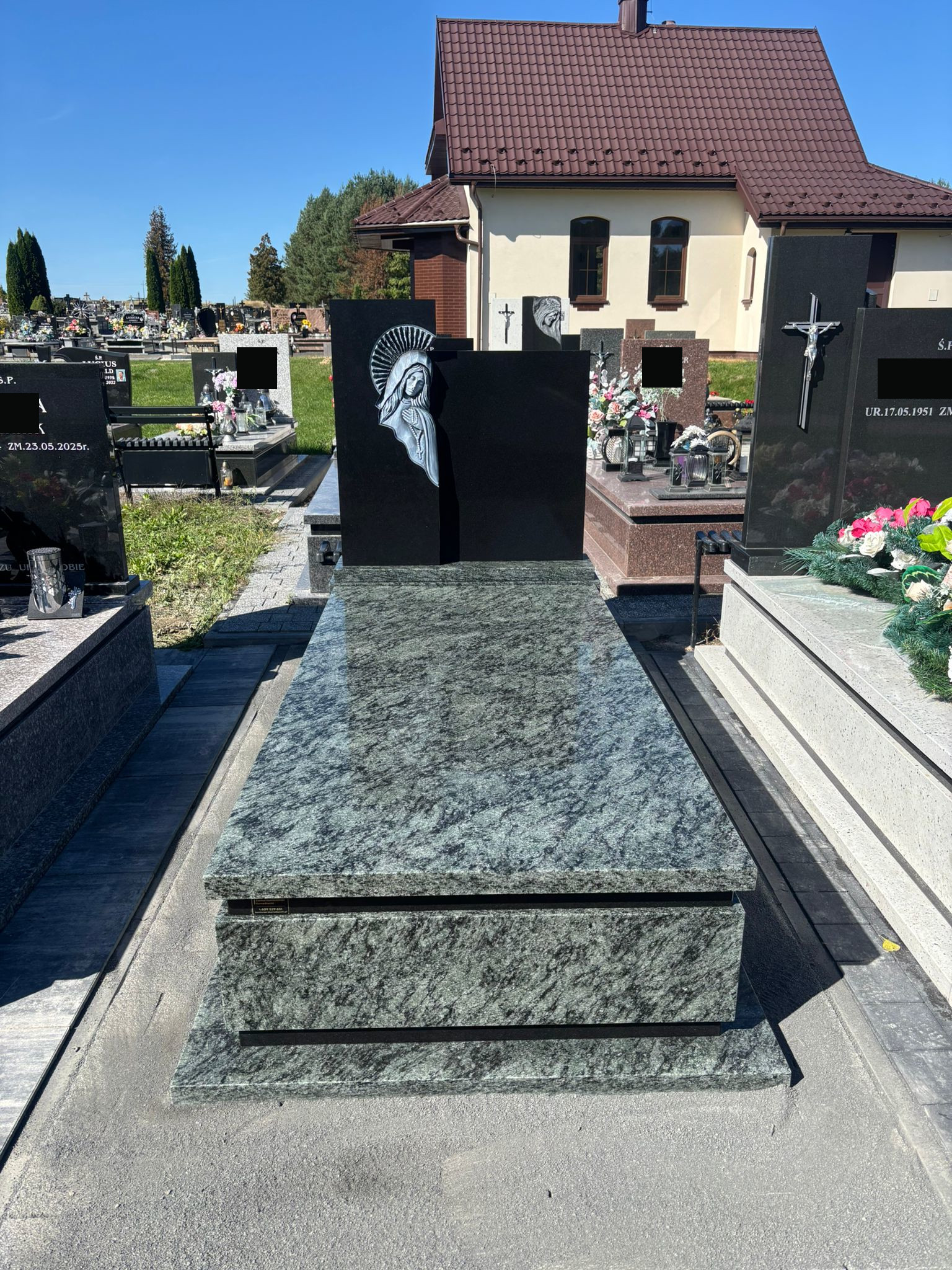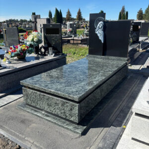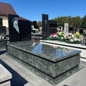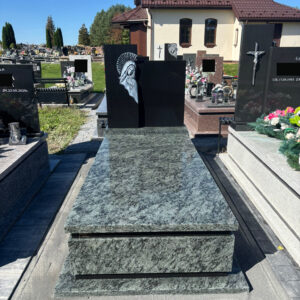 Nagrobek został wykonany na cmentarzu w Lubyczy Królewskiej. Ma on prostą formę, zbudowany jest z dwóch odmian granitu. Przeważająca część bryły wykonana została z kamienia w odcieniu zieleni. Charakterystycznym elementem jest płaskorzeźba Matki Boskiej.