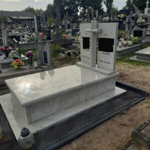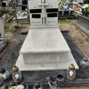 Nagrobek w Narolu Nagrobek ostał wykonany na cmentarzu w Narolu. Ma klasyczną formę. Jego cechą charakterystyczną jest symetria, krzyż o obłych krawędziach oraz wykonanie w całości z jednakowego jasnego granitu. Może ci się spodobać również Nagrobek w Lubyczy Królewskiej 2024-06-13 Nagrobek z kamienną ławką w Bełżcu 2024-01-04 Nagrobek w Jarczowie 2025-04-08