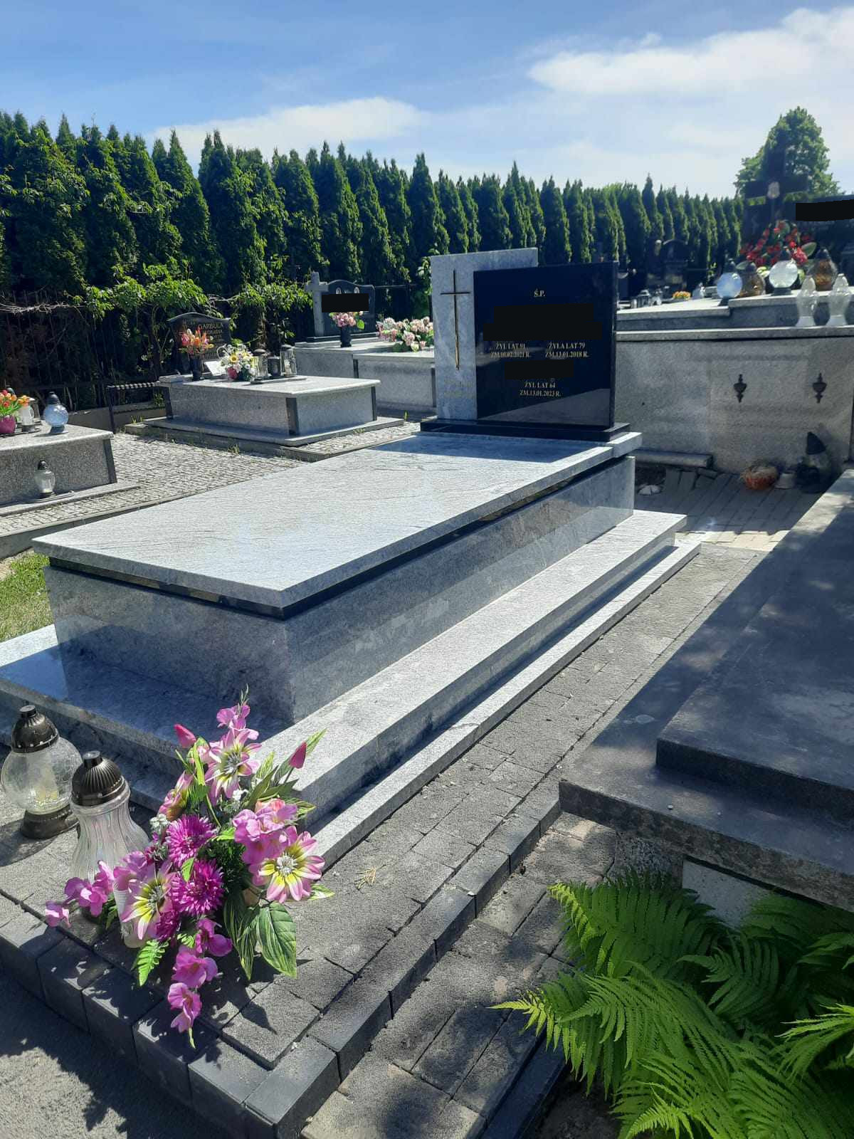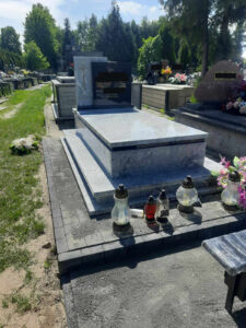 Nagrobek powstał na Starym Cmentarzu w Tomaszowie Lubelskim. Parapety, obłożyny, pokrywa oraz lewa część tablicy zbudowane są z jasnego granitu i nazwie Viscount White. Pozostałe elementy wykonano z czarnego granitu Nero Angola. Nagrobek o prostej , nowoczesnej formie. Dookoła pomnika została ułożona kostka brukowa.