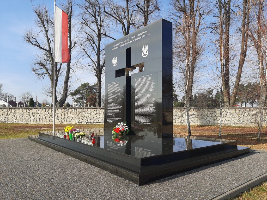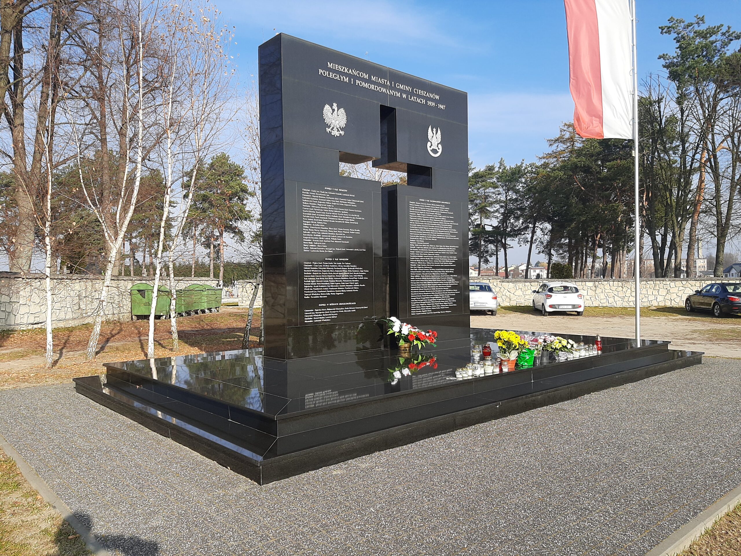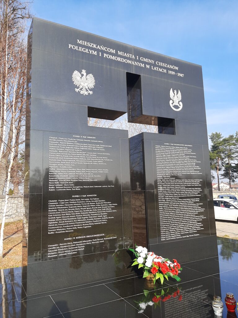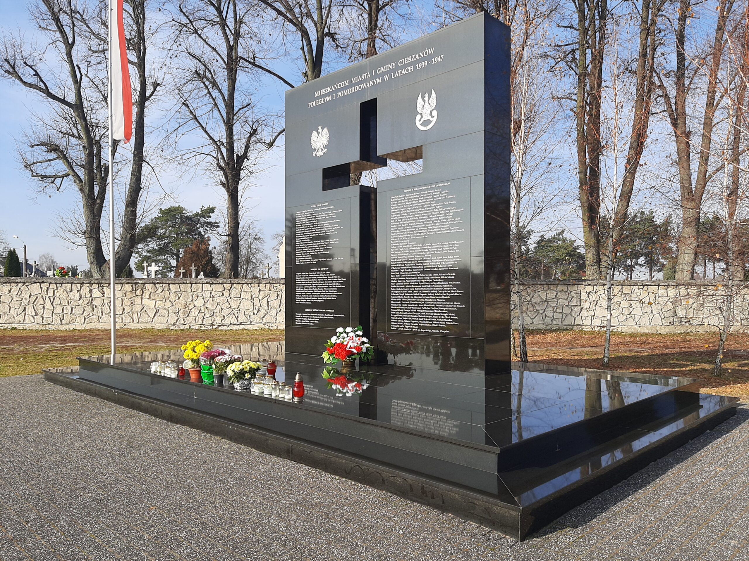 Pomnik ku czci poległych i pomordowanych mieszkańców Cieszanowa w latach 1939-1947 jest zlokalizowano w mieście Cieszanów tuż przy cmentarzu. Prosta bryła monumentu wykończona jest ciemnymi płytami granitowymi zamocowanymi na stalowych kotwach. Budowla składa się