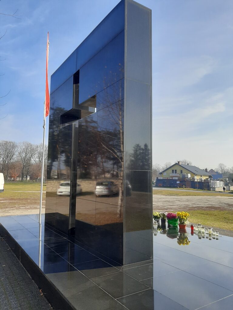 w kolorze białym. Dodatkowo dookoła pomnika ułożono kostkę brukową.