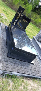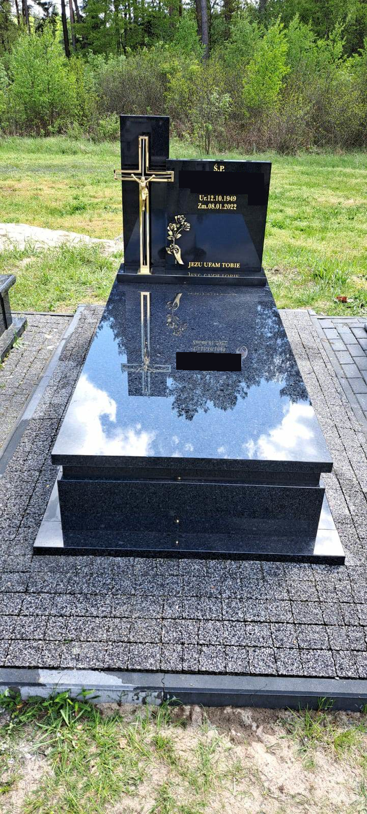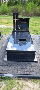 Nagrobek powstał w miejscowości Łukawica, w gminie Narol, w powiecie lubaczowskim. Został wykonany w całości z czarnego granitu. Składa się z parapetów na których ustawiono obłożony, następnie cofnięty pas na którym leży pokrywa. Tablica składa się z dwóch części. Na lewej części umiejscowiono napisy, natomiast przed prawą, nieco wyższą częścią tablicy zamontowano złoty krzyż. Tablicę dodatkowo zdobi złota róża. Dookoła nagrobka została ułożona kostka brukowa.