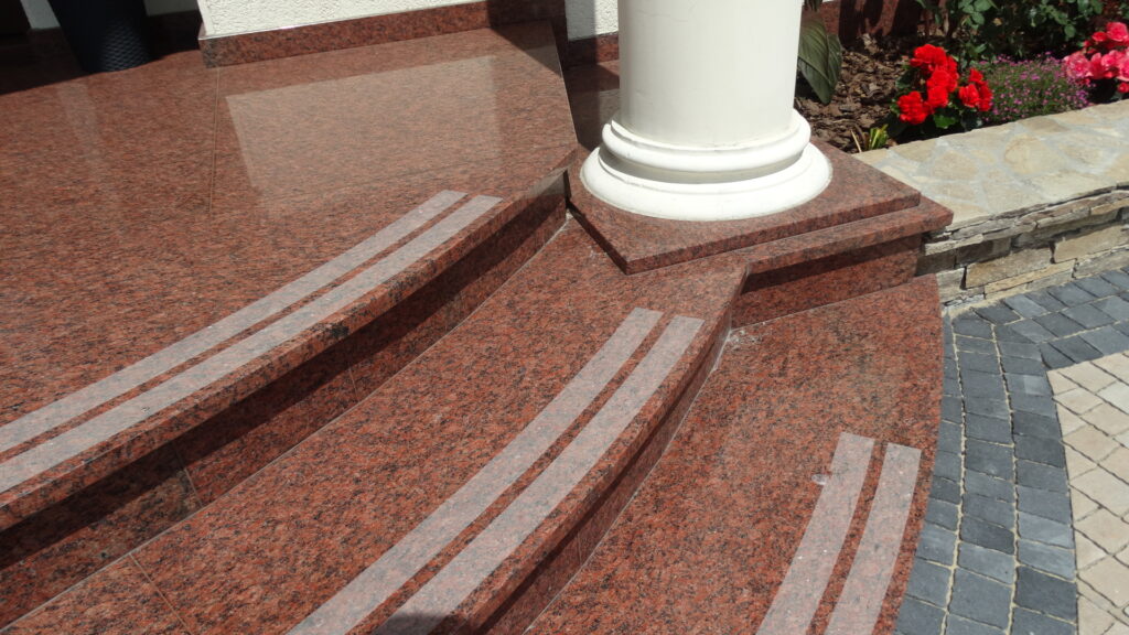 Kamień naturalny ze względu na swoją odporność na czynniki zewnętrzne takie jak deszcz, mróz czy słońce jest najlepszym materiałem jeśli chodzi o wykończenie tarasów czy schodów zewnętrznych. Właśnie trwałość tego materiału skłania coraz więcej osób jego zastosowania. Nasza firma ma doświadczenie w realizacji tego typu przedsięwzięć w domach jednorodzinnych, budynkach usługowych a także w obiektach urzędów państwowych.